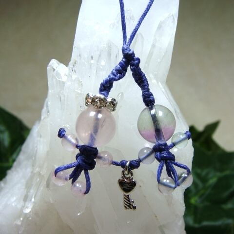 ローズクォーツが自分自身が幸せになる方向へ導いてくれ、フローライトがそのためのインスピレーションをを与えてくれる組合せです。