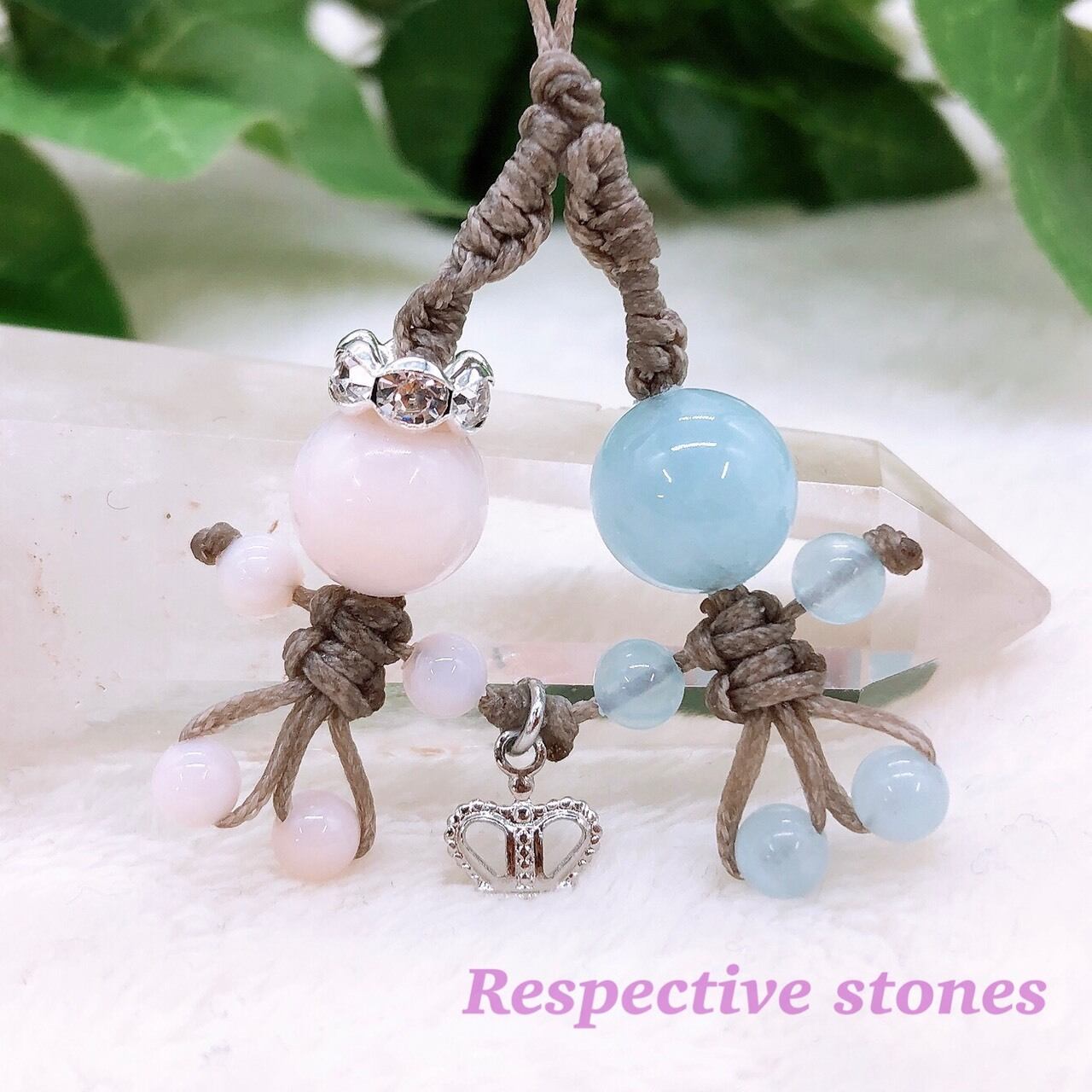 今回は、幸福感や感受性を高めるピンクオパールと癒し・コミュニケーション力にいいとされるアクアマリンでピンク×ブルーのハッピーナ☆ダブルを作りました。