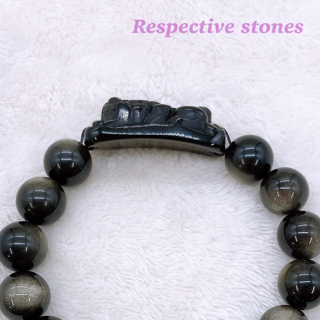 <ブレスレット>財運・金運の象徴★貔貅(ヒキュウ)【ゴールデンオブシディアン】12mm/1ten-6