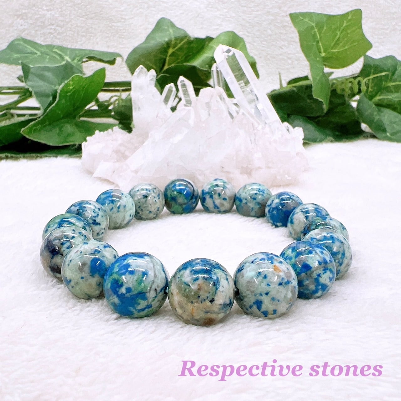 <ブレスレット>一点物♪限定入荷★レア!!ターコイズインラピスラズリ<災いから守る・インスピレーション>(12ミリ・17センチ)/1ten-30