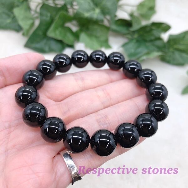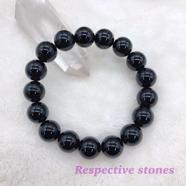 <ブレスレット>一点物♪高品質★チベット産モリオン(黒水晶)【最強の魔除け・邪気払いの石】(12ミリ・16.5センチ)/1ten-13