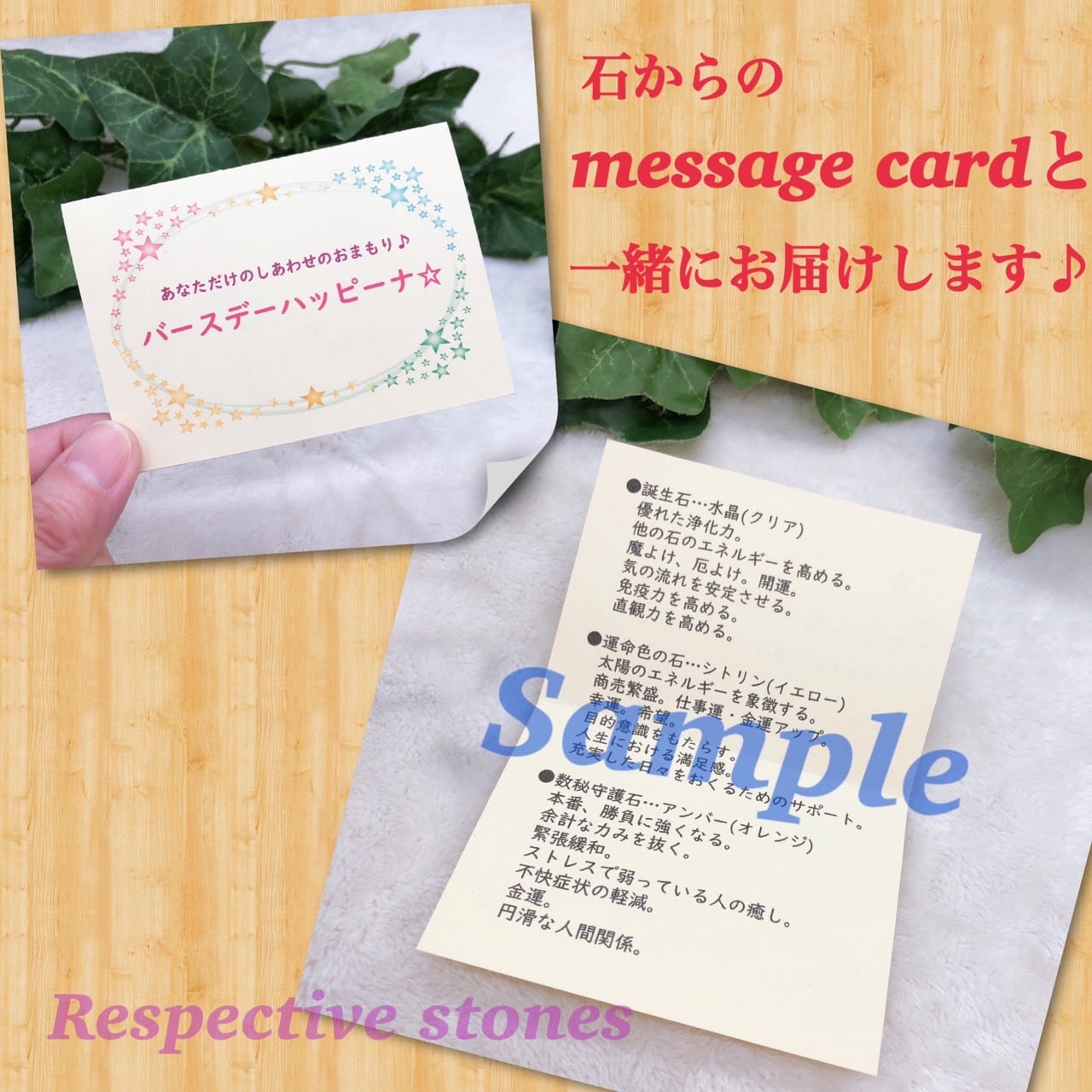 石からのmessage cardと一緒にお届けします。