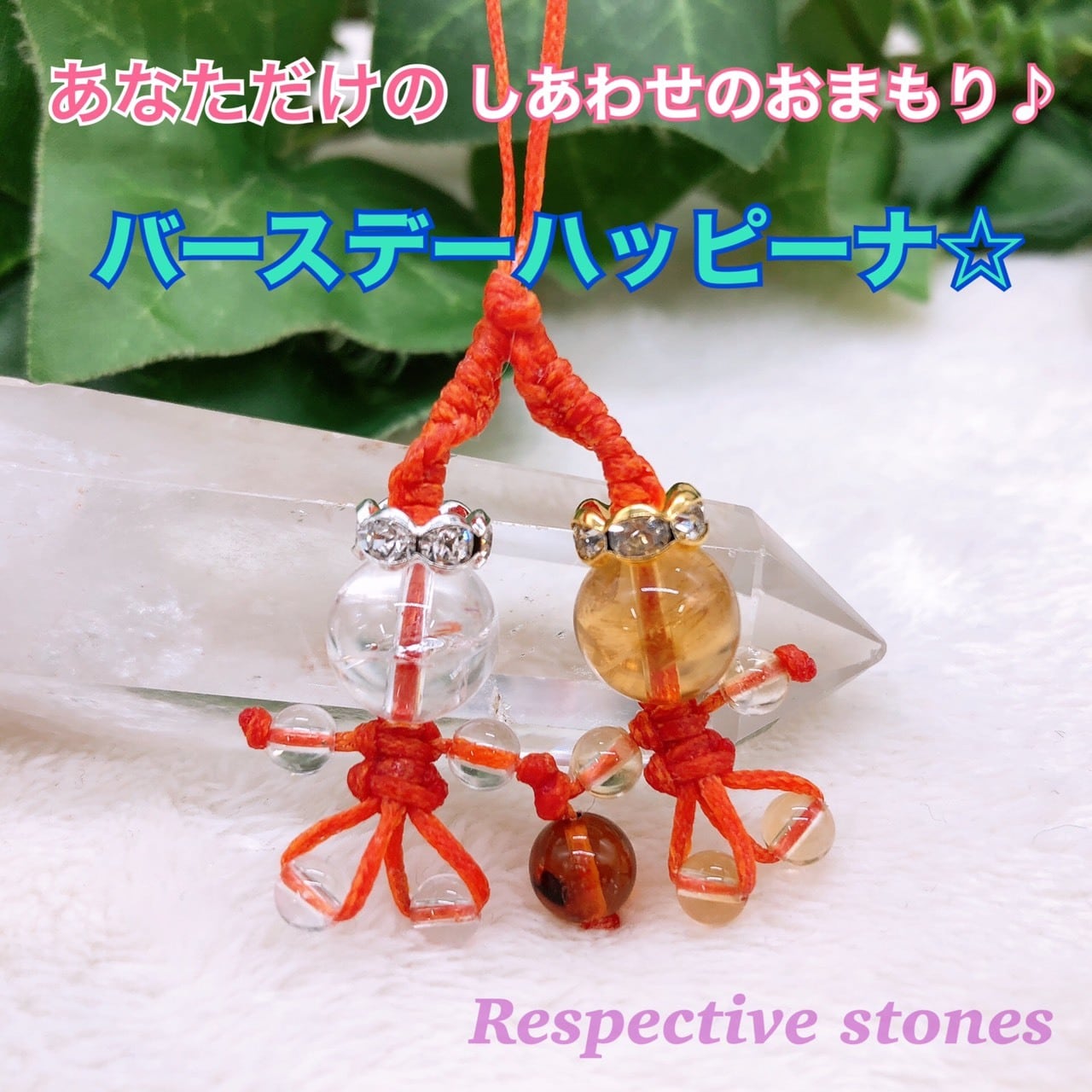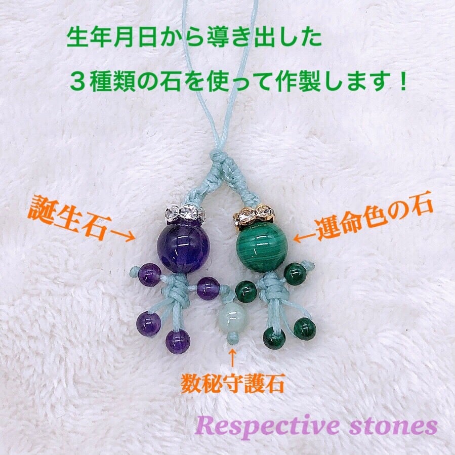 ★ご注文時にハッピーナ☆を持たれる方の生年月日と性別(石の色味やひもの色を選ぶ際に参考にさせていただきます)をご記入ください。