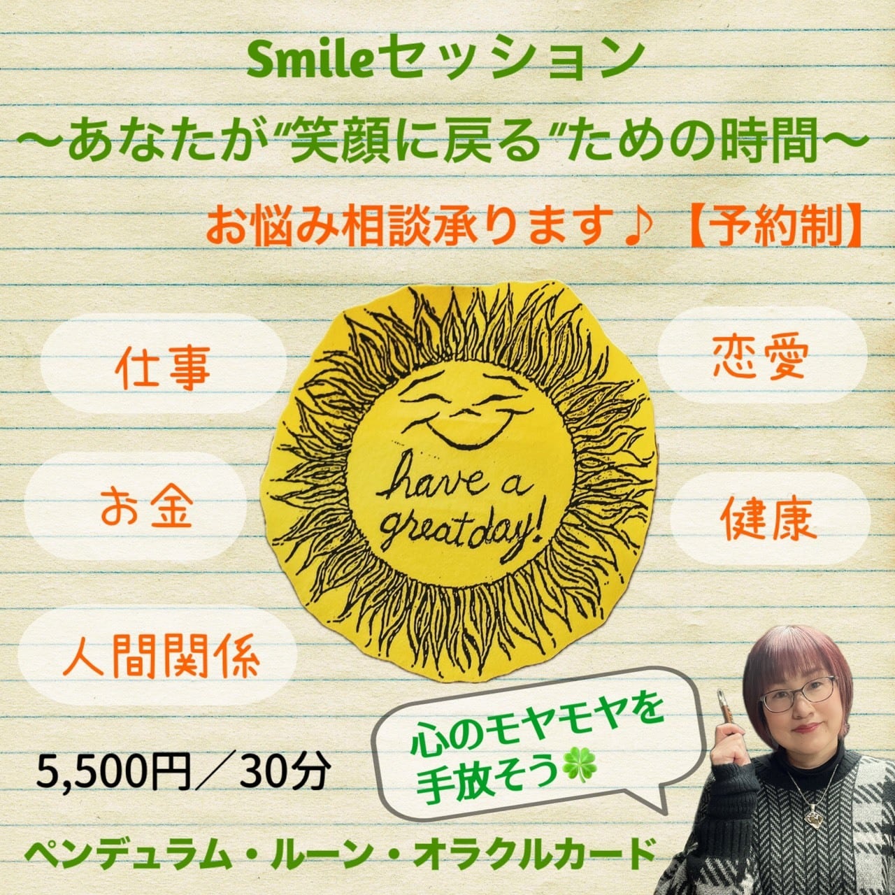 【Smileセッション】お悩み相談承ります♪モヤモヤを吐き出して笑顔を取り戻そう★今の状況やお悩み、願い、なりたい自分など★ツインレイのお悩みもOK/sm-ss