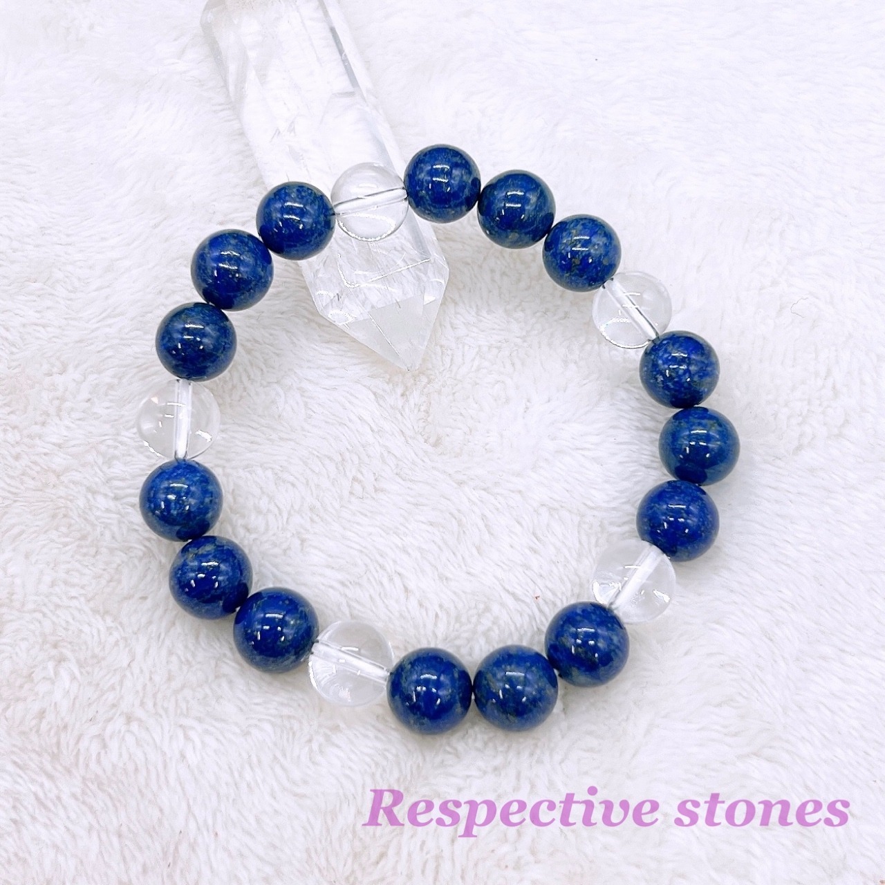 <ブレスレット>人格的成長・幸運・邪気払い【ラピスラズリ×水晶】(10mm/17cm)/mbl-4