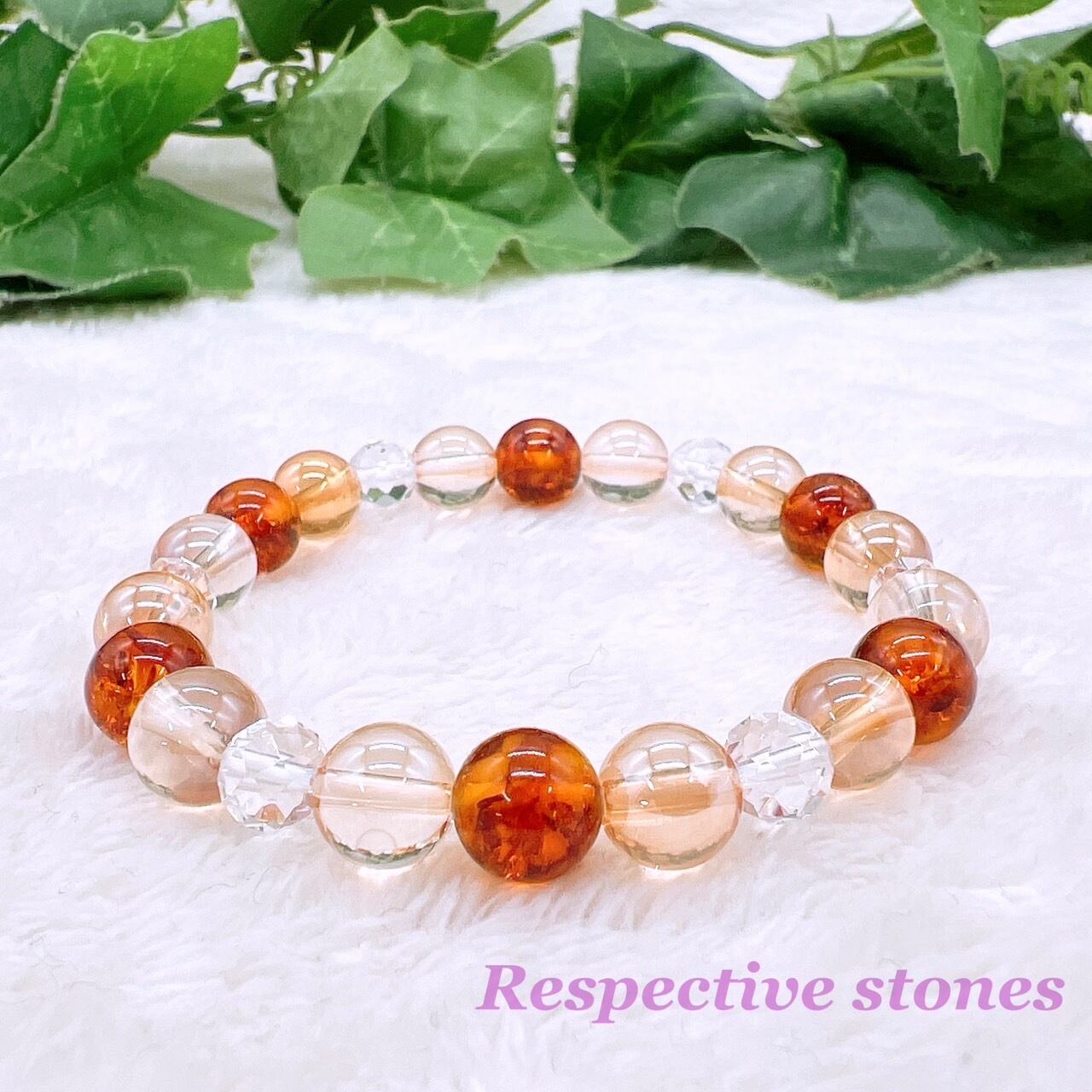 ★こちらのブレスレットには、天然アンバー(圧縮タイプ)を使用しています。