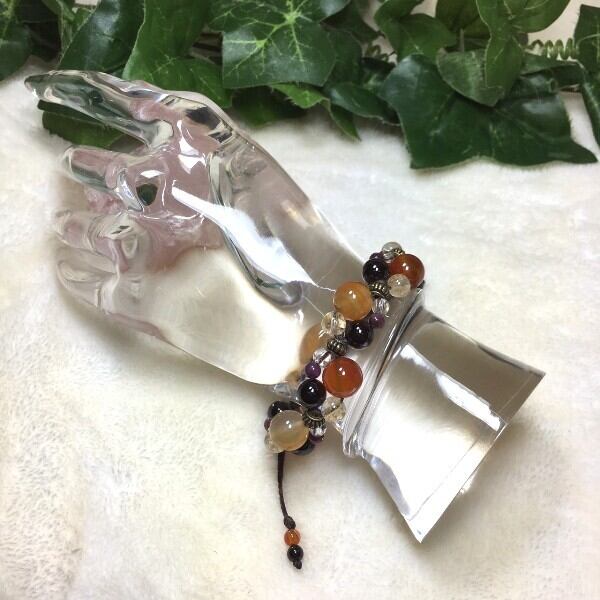 <ブレスレット>ひも編みタイプ♪仕事運UP!目標達成☆(カーネリアン×ガーネット他)デザインが楽しめる♪調節OK!/wam-9