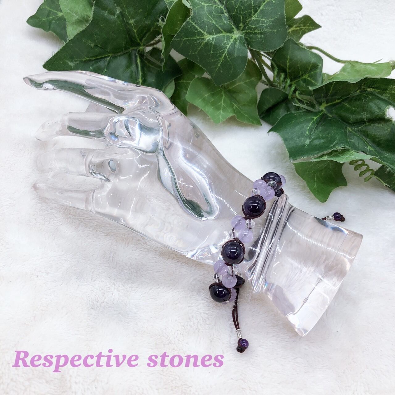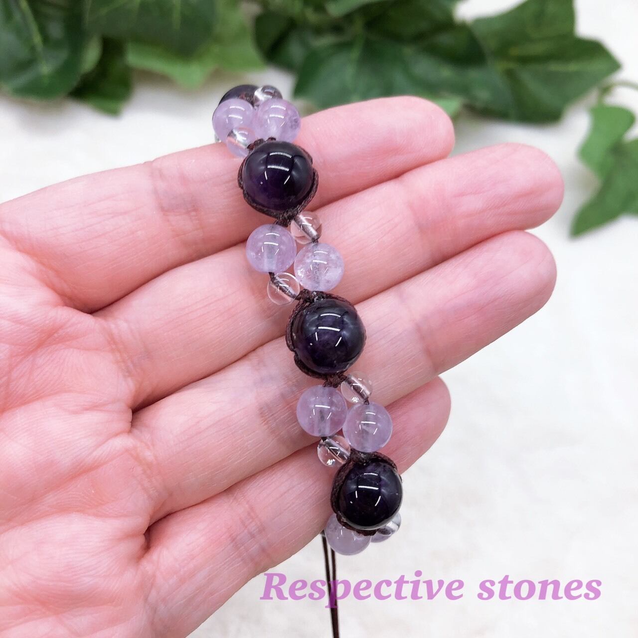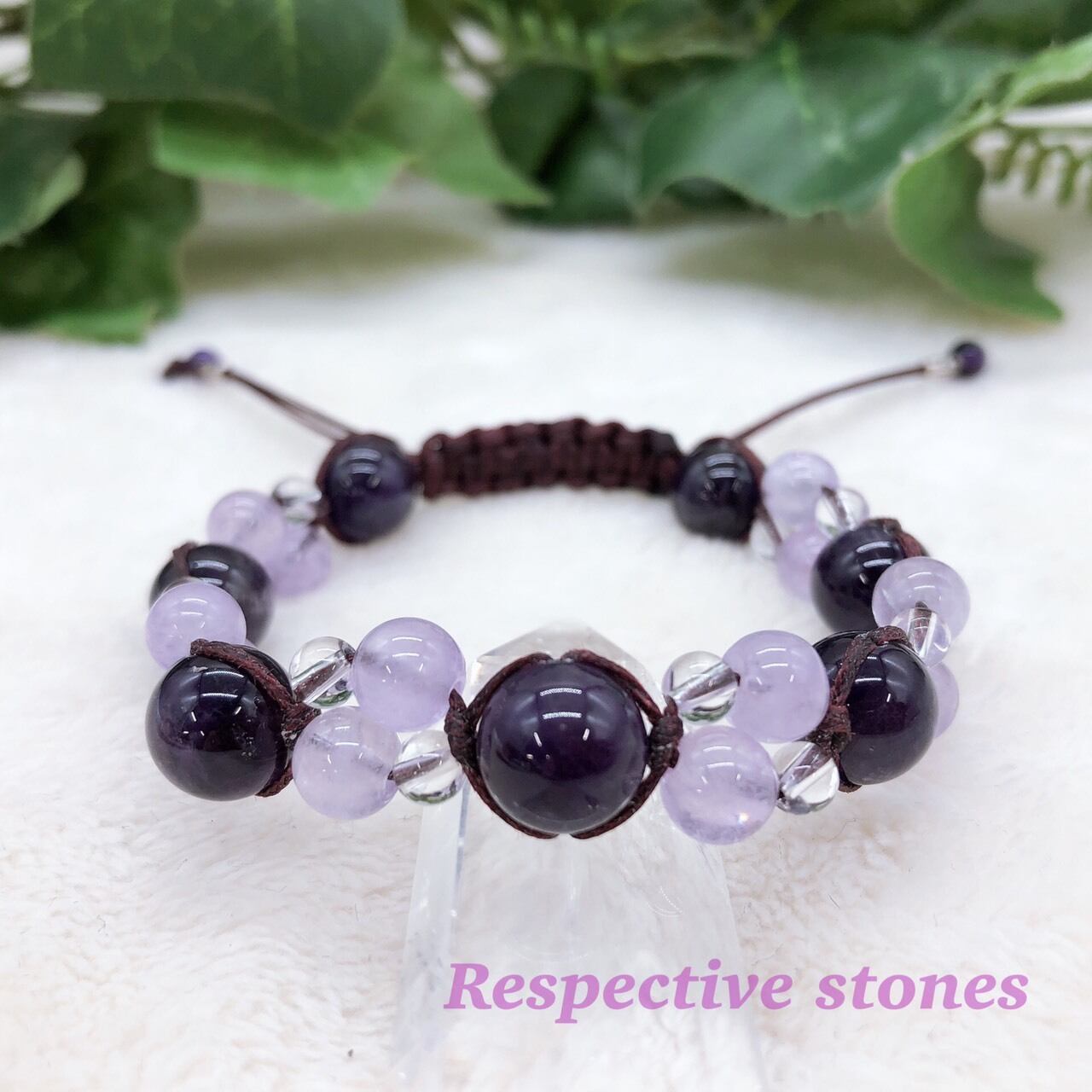 <ブレスレット>ひも編みタイプ♪ディープ&ラベンダー★ダブルアメジスト★<調和・恋愛・癒し>/ham-7
