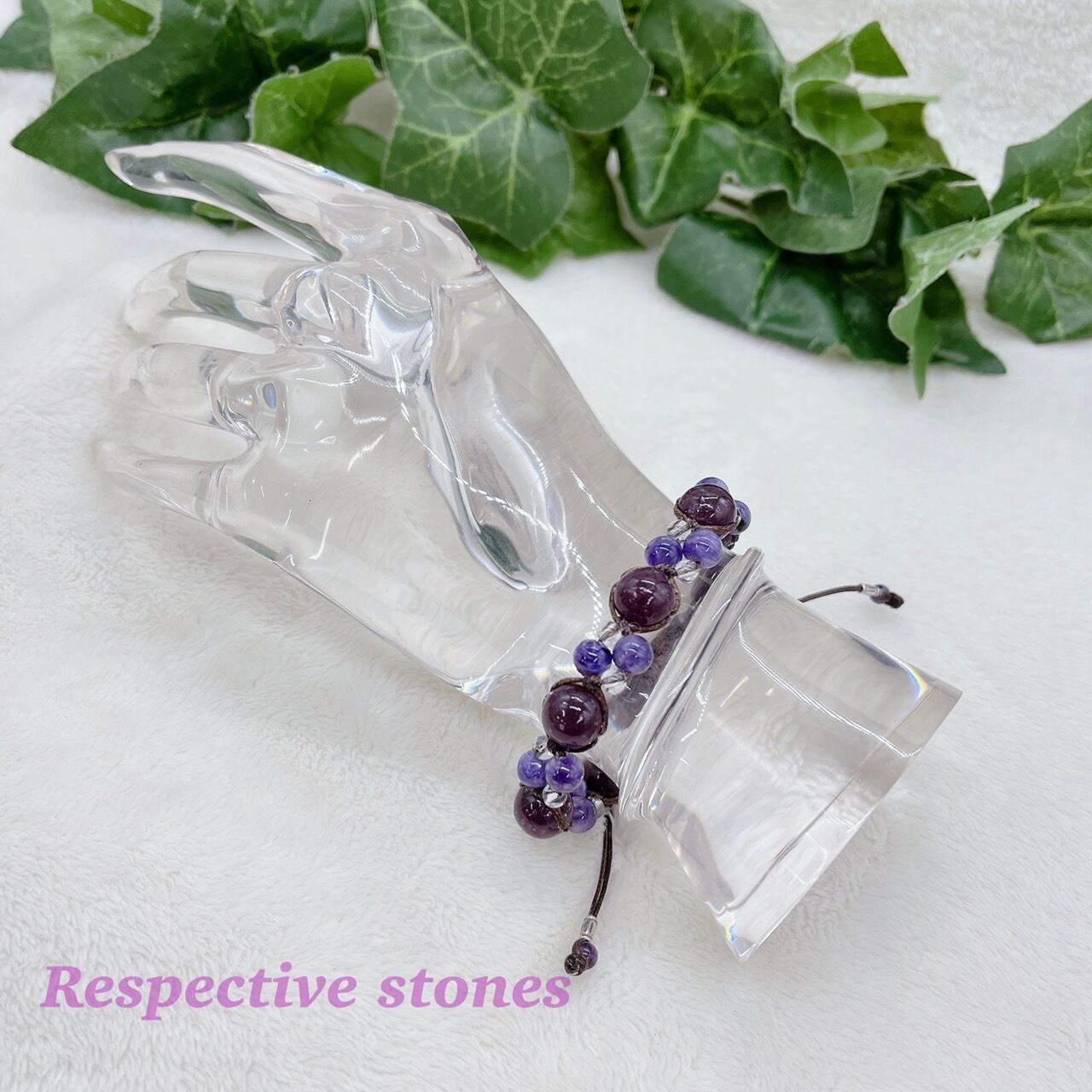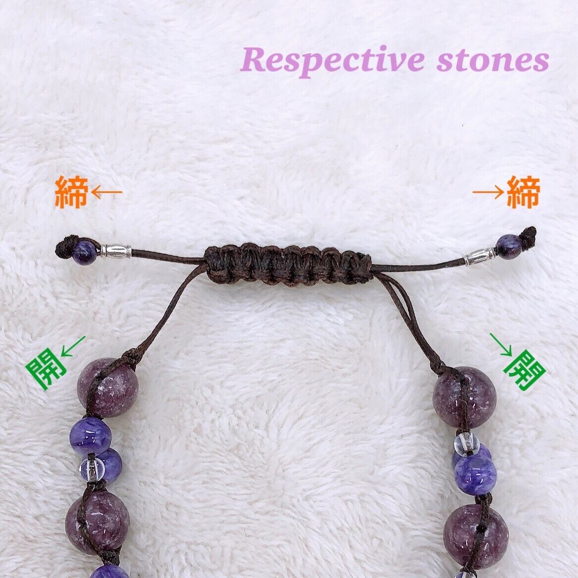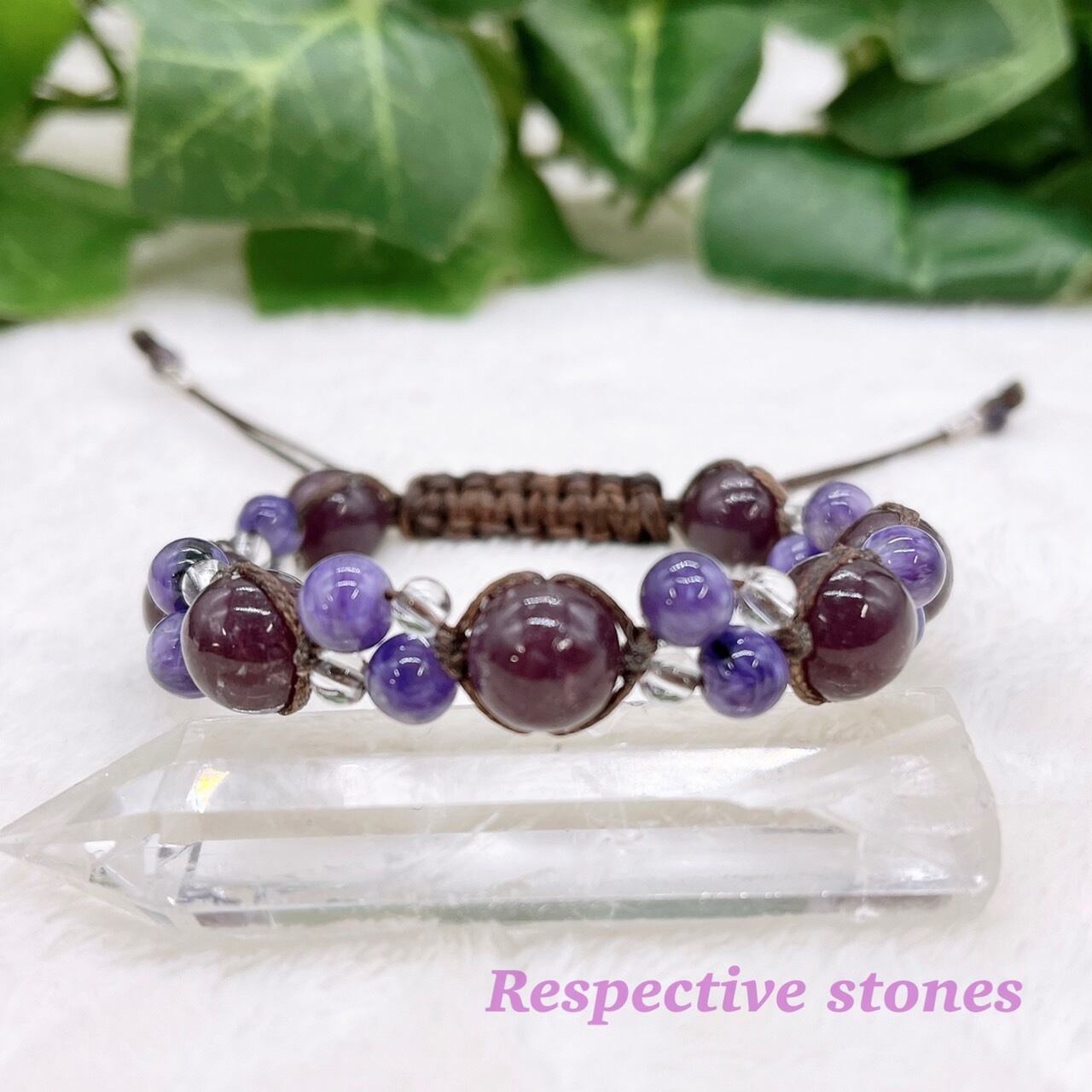 <ブレスレット>ひも編みタイプ♪困難を克服!新しい物事へ挑戦★(レピドライト×チャロアイト)/ham-2