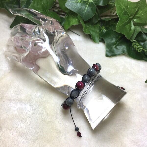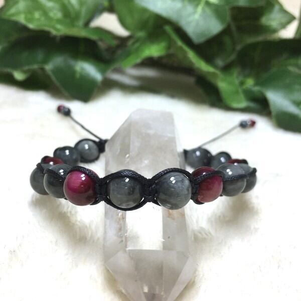 今回はそんなイーグルアイとタイガーアイ仲間のピンクタイガーアイを合わせたひも編みタイプのブレスレットです。