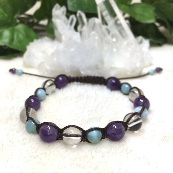 <ブレスレット>ひも編みタイプ♪コミュニケーション力UPで絆を深める【アメジスト・ラリマー】/sam-2