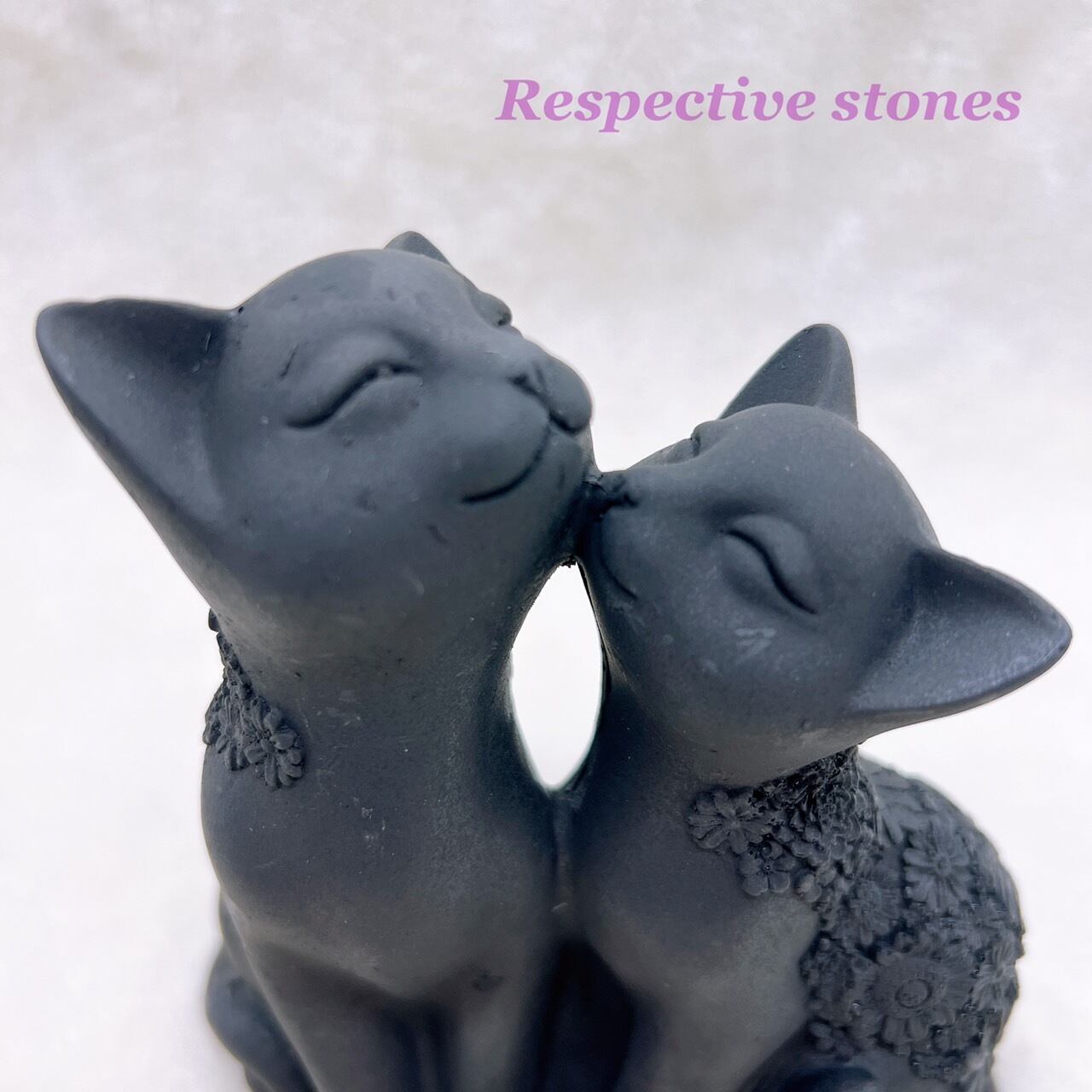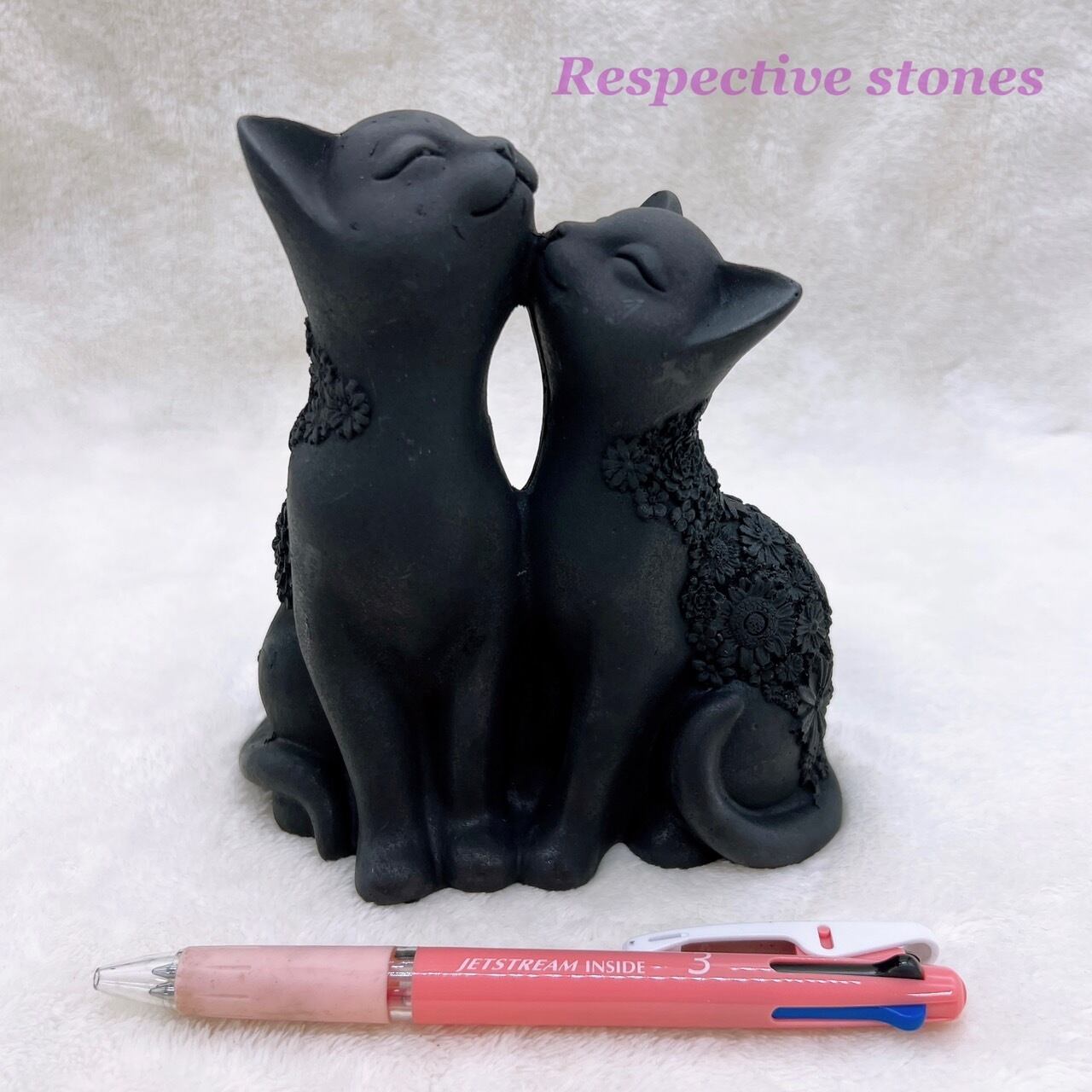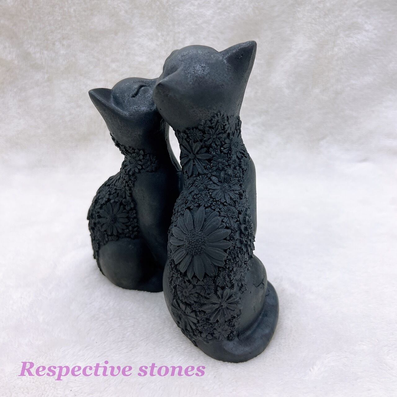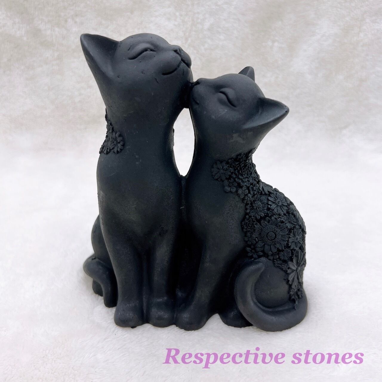 こちらは精密で繊細なフラワー彫刻が施された、とても愛らしい2匹の夫婦猫の置物です。