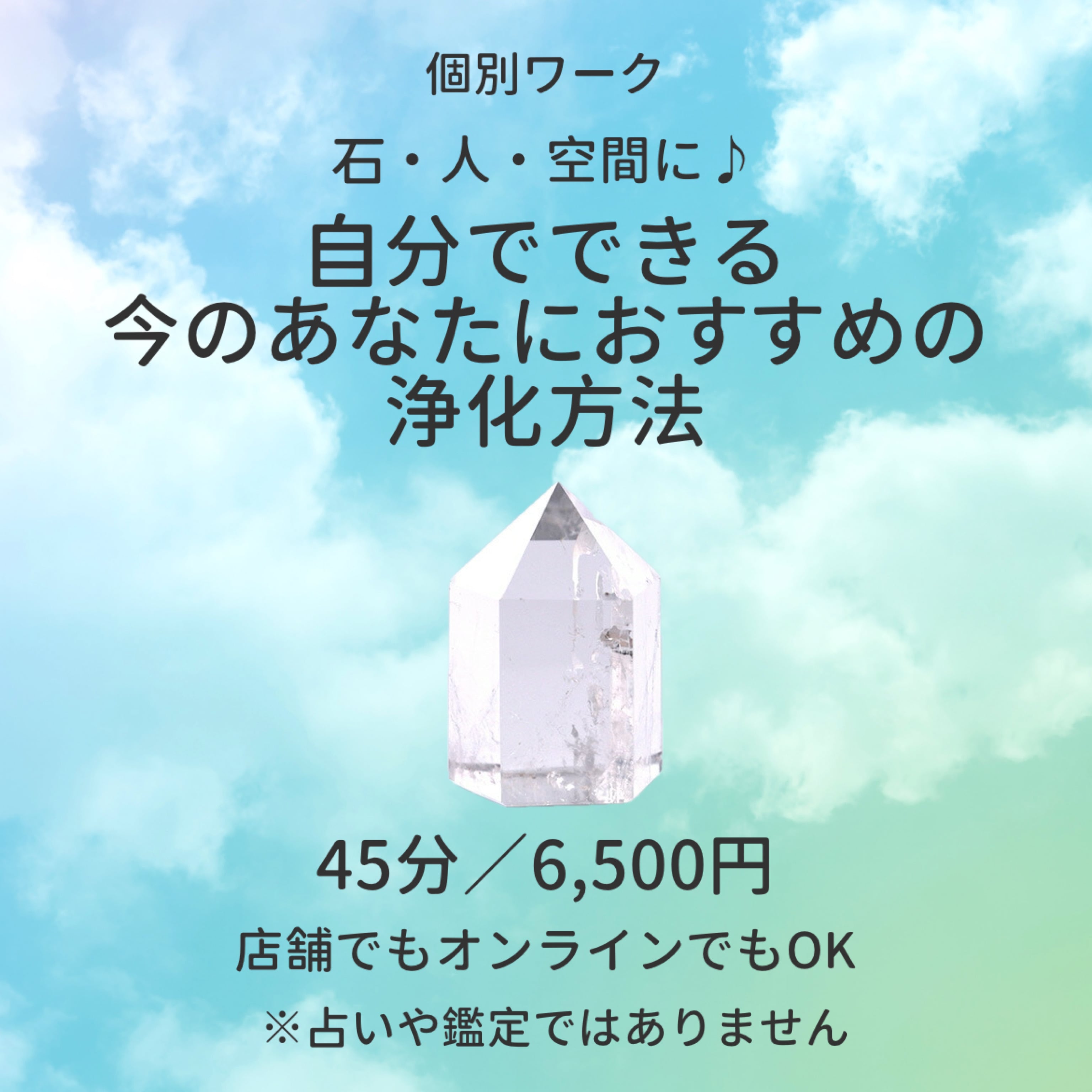 <石・人・空間に♪自分でできる 今のあなたにおすすめの浄化方法>(個別・45分)