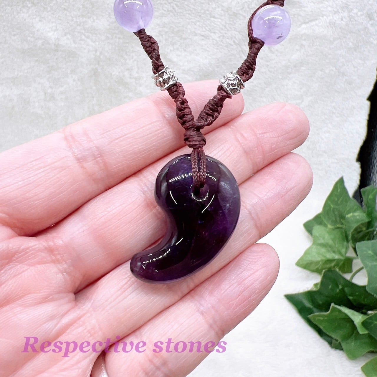 ■アメジスト(勾玉)は色の濃淡や模様の入り方によってひとつひとつ表情が違います。