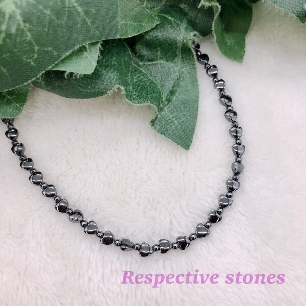 磁気入りのハート型ヘマタイト(4×4ミリ)を使ったネックレスです★