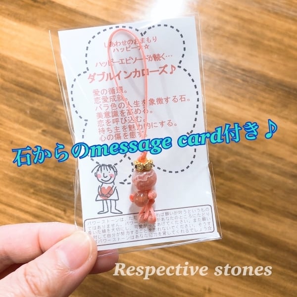 愛の循環。バラ色の人生を象徴する石。美意識を高める。心の傷を癒す。体と心の疲れを回復する。恋を呼び込む。持ち主を魅力的にする。恋愛成就。お腹を中心にエネルギーを活性化。