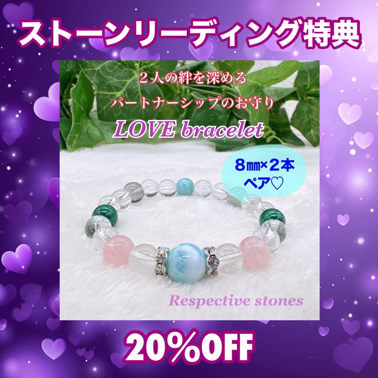 【パートナーシップ♡ストーンリーディング特典】LOVEブレスレット(8mm×2本セット)20%OFF