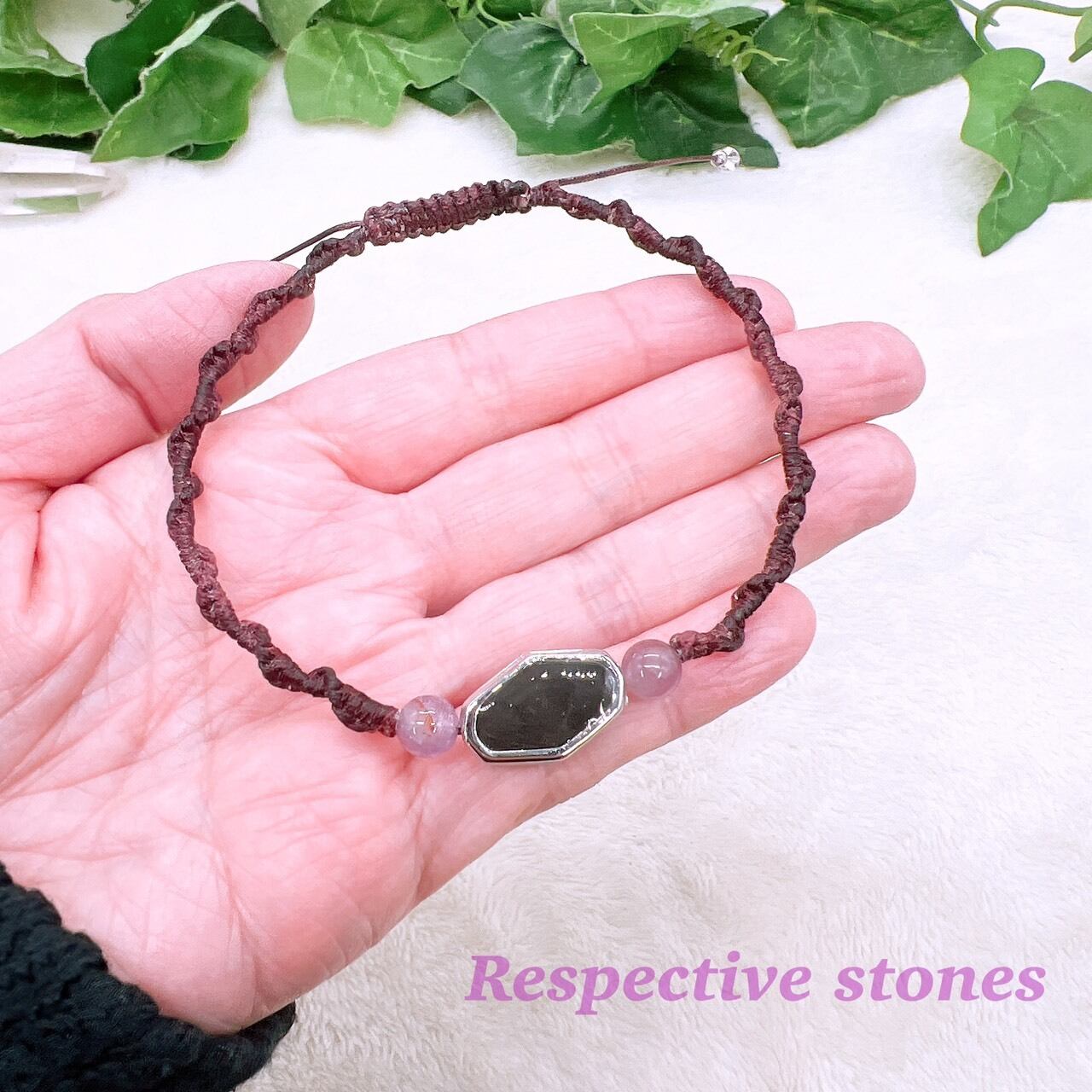 【天と地をつなぐ】隕石×パワーストーンアンクレット(プレートタイプ)★好きな天然石&ひもの色で作製OK♪/ins-179