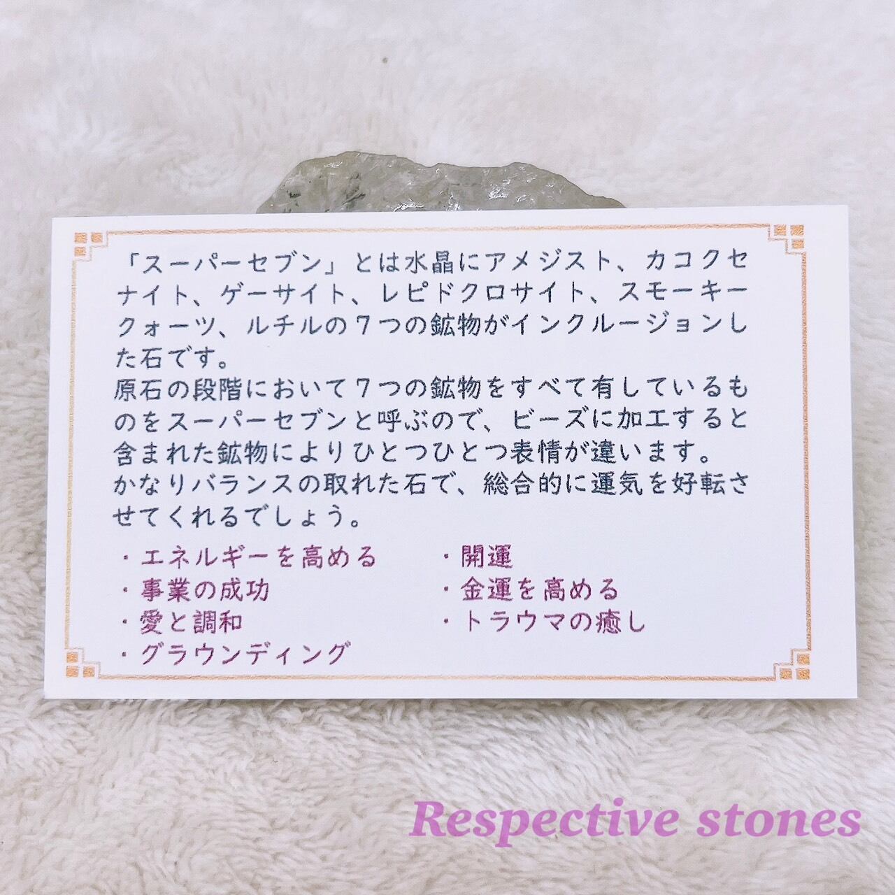 スーパーセブン(ひもの先は水晶です)を組み合わせたブレスレットです。
