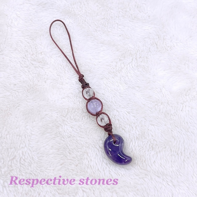 アメジストの勾玉を使ったストラップです。 勾玉がディープカラーのものには 丸珠は淡いカラーの“ラベンダーアメジスト”を 逆に勾玉がライトカラーのものには丸珠はディープカラーのアメジストを合わせております。 2タイプありますが、こちらの商品はランダム発送とさせていただきます<(_ _)> ご了承くださいませ。 勾玉は、悪い気やマイナスエネルギーから持ち主を守ってくれる古代より伝わるお守りと言われています。 使用した石のエネルギーは以下の通りです☆ ◆アメジスト(パープル) ◆ラベンダーアメジスト(ライトパープル) 大切な人との絆を深める。調和。癒しと安らぎ。内観の促進。精神の安定。問題解決を助ける。知性と洞察力を高める。考えと行動が一致するようサポート。 ◆水晶(クリア/ウェーブカット/6ミリ) 優れた浄化力。他の石のエネルギーを高める。免疫力を高める。魔よけ、厄よけ。開運。直観力を高める。自己成長。気の流れを安定させる。 ひもの色:ボルドー 全体の長さ:約9.5cm(ひもの長さ:約4cm) ※商品は水晶クラスター・ホワイトセージで浄化したものをお届けいたします。 ※写真と同じランクの石を使用した商品をお送りします。 ひとつひとつ手作り&天然石を使用しているため、写真と実物が若干異なる場合がございます。 ※天然石の特質上、小さなクラック(ひび)やくぼみ、欠け、インクルージョン(内包物)があるものもございます。 また、商品はできるだけ現物に近い色で撮影していますが、光源・カメラ・お使いのパソコン、スマートフォン等のモニター環境(明るさなど)によって実物と色が若干異なる場合があります。 以上の点をご理解のうえご注文いただくようお願いいたします。 【配送について】 ◆メール便は補償がありません◆ メール便(クリックポスト)は万一、配送事故(紛失・破損など)があっても補償はございません。その点をきちんとご理解の上、選択してください。 紛失や破損がご心配な方は対面受け取りのレターパックプラスまたは宅急便(ヤマト運輸)をご選択ください。